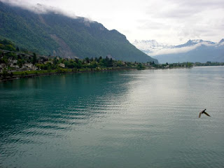 This is the view from our hotel room. The town of Montreux is surrounded by beautiful vineyards and near the town of Evian (yes, it's where the bottled water comes from - really!) and was home to Charlie Chaplin (for 25 years), Freddie Mercury (the lead singer of Queen) and where Le Corbusier built (designed) Villa Le Lac for his parents.